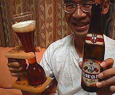 深み、複雑さといった点では物足りなくも 感じました。 でもこのビールを有名にしているのはそのグラスでしょう。 真ん中がキュっとくびれているという、非常に特徴的な形状をしているグラスです。
