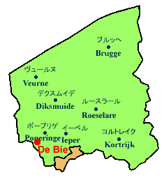西フランデレン(フランダース)州の西はずれの町Poperingeから西南方向、 フランス国境まであとわずか、というところに Helleketel(ヘレケテル) の森が あります。 小さな森ですが、何かの物語の舞台にもなりそうな気がする森です。 この森の近くに小さな、本当に小さな小屋が2つぽつんと 建っています。これが De Bie 醸造所とその併設カフェ(De Hellekapelle)です。 ちなみに“Bie”とは「蜂」という意味です。