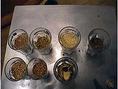 小麦・ホップ・オレンジの皮を乾燥させたものの粉末・コリアンダー(下段左より)