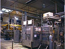 非常に大きな部屋に巨大な瓶詰め用の機械が置かれている。