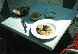 いつ行ってもけっこう混み合っていて待たされることもありますが、 もし仮に待たされたとしても、 待っただけのことはあるものが食べられます。 筆者はサイクリングの途中にこの店に寄ったことがありますが、 その時に店の外に並べられたテーブルで食べた、 ハーフチキンのWatous Witベースのクリーム煮と 一緒に飲んだ Watou's Witの味が忘れられません。