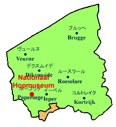 Westvlaanderen(西フランデレン)州の南西に位置する町Poperinge(ポープリゲ)。 猫祭りで知られるIeper(イーペル)の隣町です。 この町は中世にはリネンの有力な産地で、 ハンザ同盟の一員でもありました。 しかし、リネン生産の衰退とともに、この町は ホップ生産に新たな道を見出しました。 現在ではベルギーで生産されているホップのうち、 4分の3がこの地で作られています。