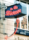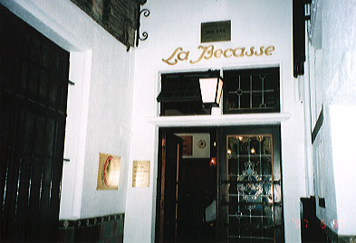 このカフェに行くためには、グランプラスの 王の家(Maison du Roi)を右手に証券取引所(Bourse)に通じる 通りを進み、突き当たり(証券取引所)を右に曲がると 左手に赤いネオンで小さく看板が出ています。 ちょっとわかりにくいところにあります。