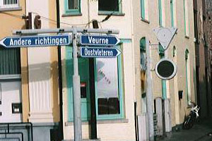 ![]() 1. Poperinge の Grote Markt の北側から Veurne/Oostvleteren の 矢印が出ている方向に進む。 |
