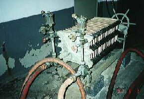 ![]() 一次発酵が終了したHommelbierはこの機械を使いろ過される。 |